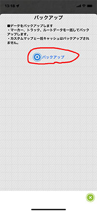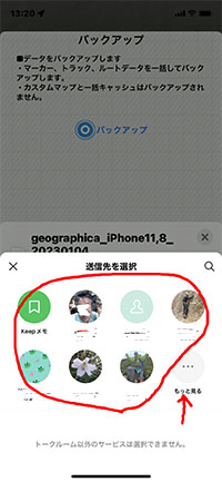 iphonの場合 Geographicaのバックアップフイルで取り込み |