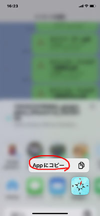 [6].左記のようになった時は、Appにコピーをタップします。 |